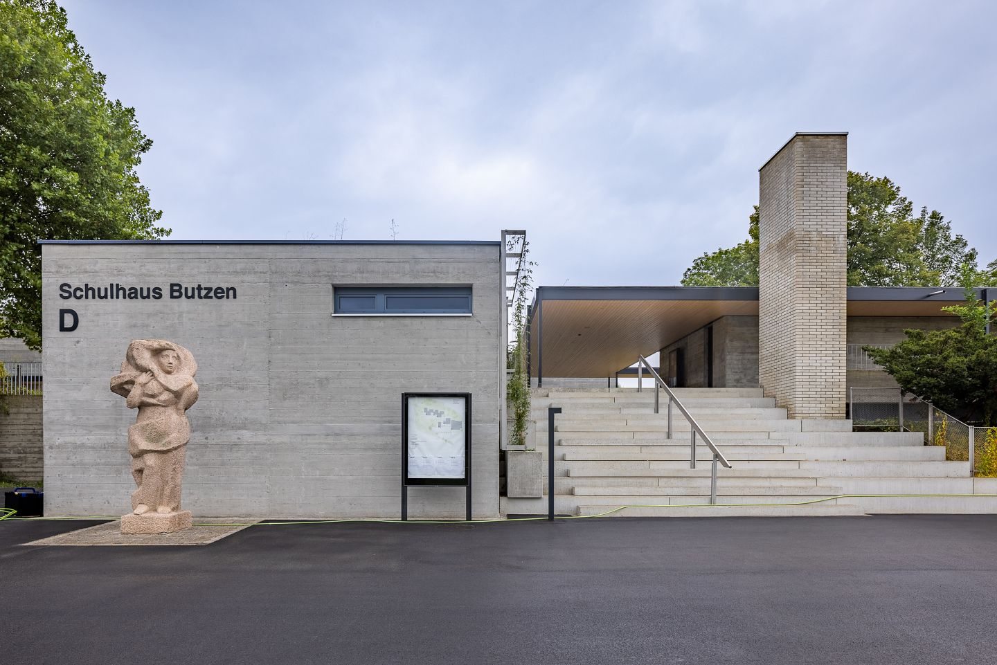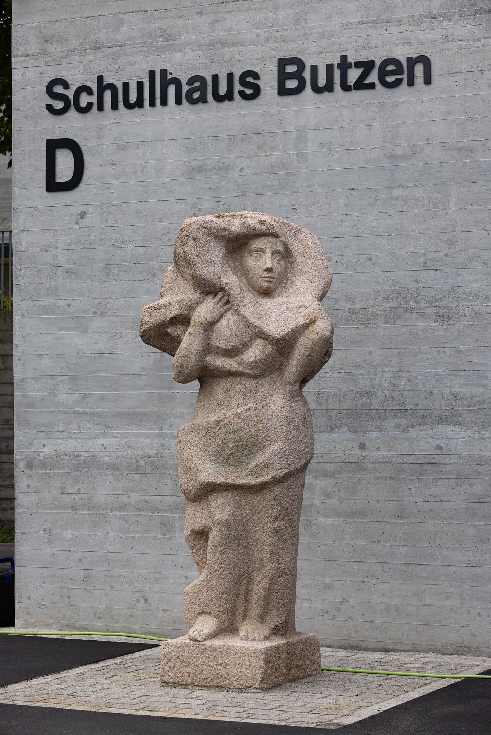 «Frauenskulptur» von Josef Wyss, Randfigur beim Schulhaus Butzen in Affoltern am Albis seit dem Baujahr 1966. Architekt war Rudolf Küenzi, der oft mit dem Bildhauer Wyss zusammenarbeitete.